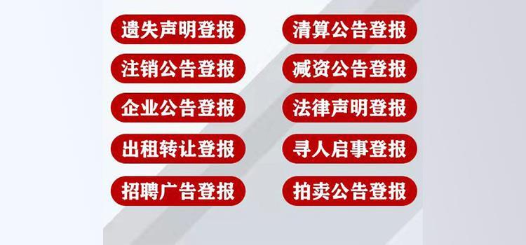 国际商报广告范围:遗失声明,企业公告,证件挂失登报(海运提单,外汇登记证IC卡,核销单,报关单,产地证,企业营业执照,法人资格证书,对外贸易经营者备案登记表,进出口企业资格证书,外商投资企业批准证书,外债签约情况表,外债登记证,海关收发货证书,海关注册备案加工手册,船员证,海关员证,报关员证) 企业公告登报:注销公告 减资公告 清算公告 变更公告 拆迁公告 拍卖公告 破产公告 歇业公告 迁坟公告 申请公示催告 个体改制公告 迁址公告 解除合同公告 解除合同通知 解除劳动合同公告 房屋征收公告 离职声明 严正声明公开声明 解聘声明 维权声明 道歉声明