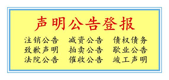 💼 我们提供全国范围内的登报服务,覆盖各种类型的公告需求。无论是遗失声明还是注销公告,我们都能快速办理,确保您的信息及时传达。 💰 我们的服务既快速又高效,价格合理,致力于为您提供最优质的登报服务。无论是拍卖公告还是债权转让,我们都能确保您的公告内容准确无误地刊登在报纸上。
